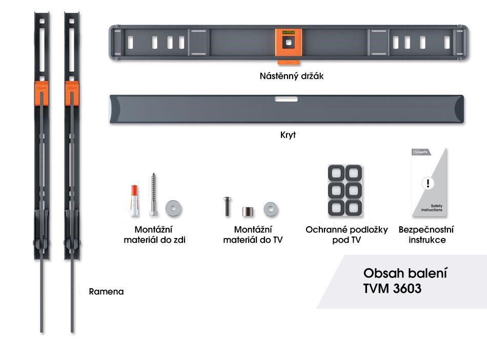 U nástěnného držáku TVM 3603 jdou design a bezpečnost ruku v ruce. Vaše TV bude připevněna na stěně jako obraz. Prostor mezi televizorem a stěnou je pouze 2,2 cm. TVM3603 je vhodný pro televizory s úhlopříčkou od 40 do 100 palců a hmotností do 75 kg. Pokud nepotřebujete televizor naklánět nebo otáčet, je tento nástěnný držák z řady COMFORT Fixed řešením, které vám bude dělat radost dlouhá léta.