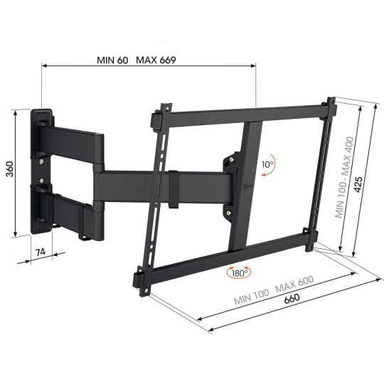 - Otočte televizor až o 180° díky 67 cm dlouhým ramenům