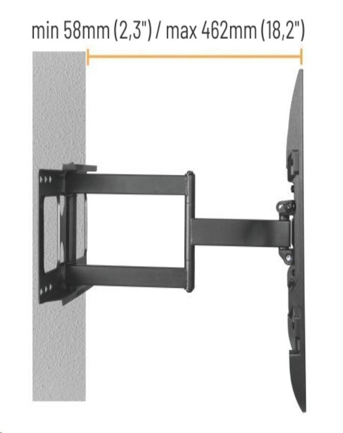 • Nastavitelná vzdálenost od stěny v rozsahu min. 58 mm, max. 462 mm