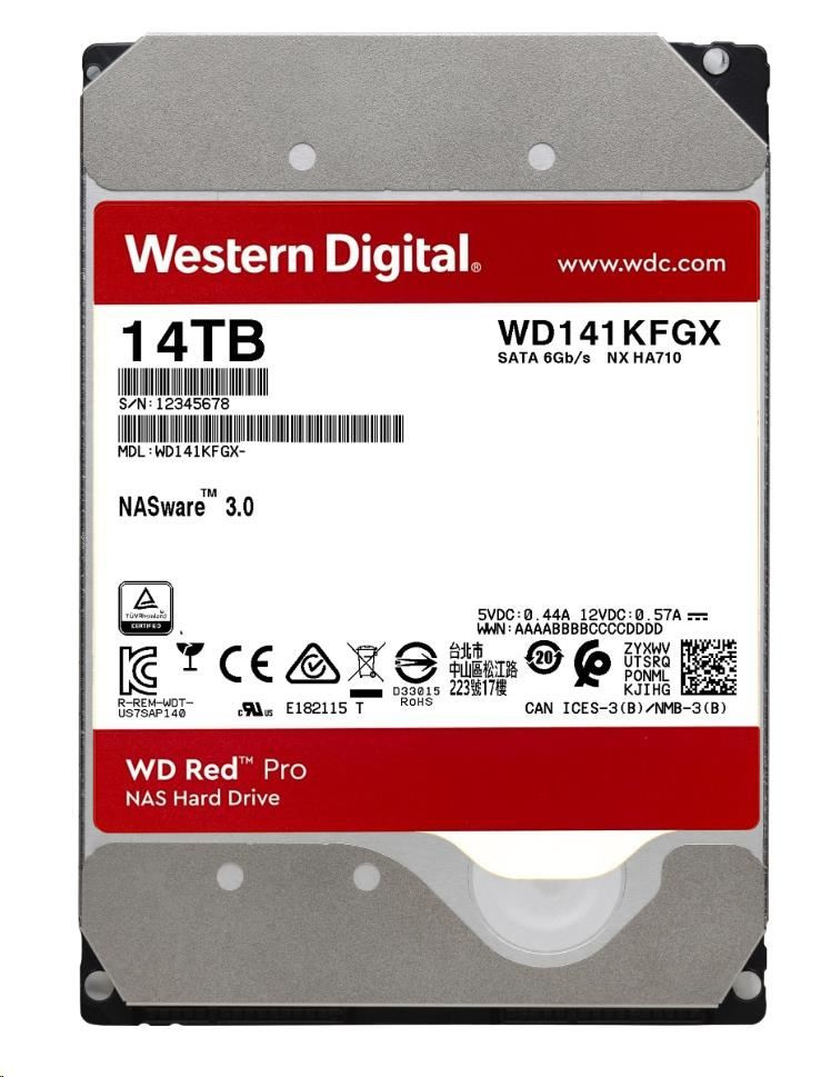 WD RED Pro NAS WD142KFGX 14TB, SATA III 3.5", 512MB 7200RPM, 255MB/s, CMR