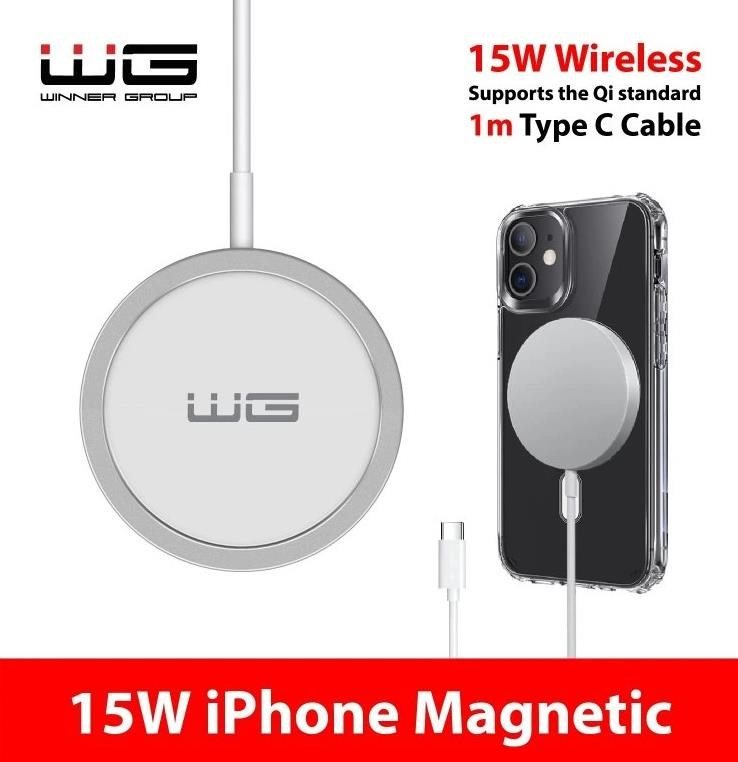 WG - Bezdrátová nabíječka FAST MAGNET 15W, kulatá, bílá