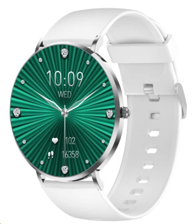- Řemínky: 1x silikonový bílý, 1x nerezová ocel stříbrná.