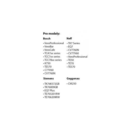- Kompatibilita: Vhodný pro širokou škálu plnoautomatických kávovarů značek Bosch, Siemens, Gaggenau a Neff.