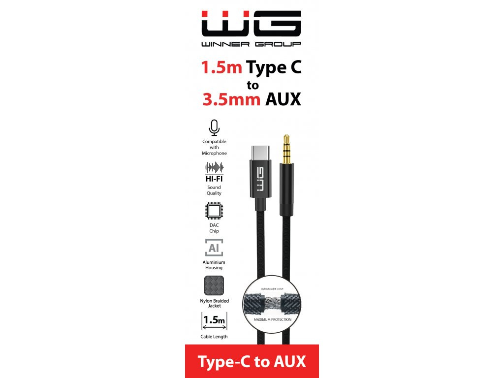 WG - Kabel Type-C (male) na AUX 3,5mm jack (male), 1,5metru, DAC chip, černá