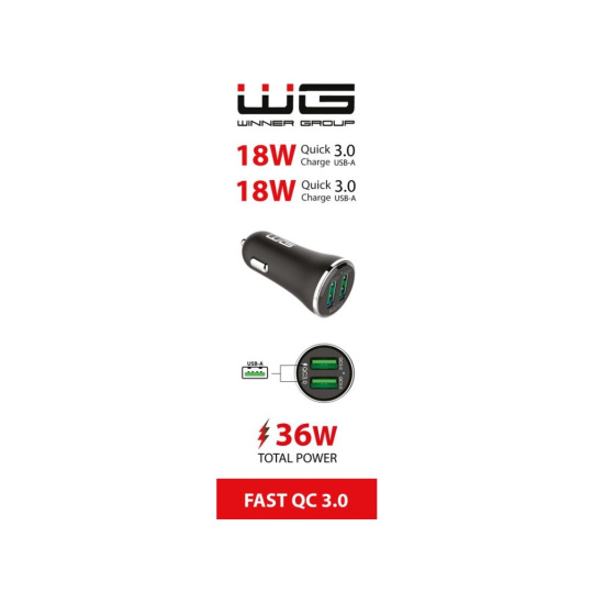 WG - Nabíječka do auta 2x USB-A 36W, QC 3.0 + QC 3.0, černá