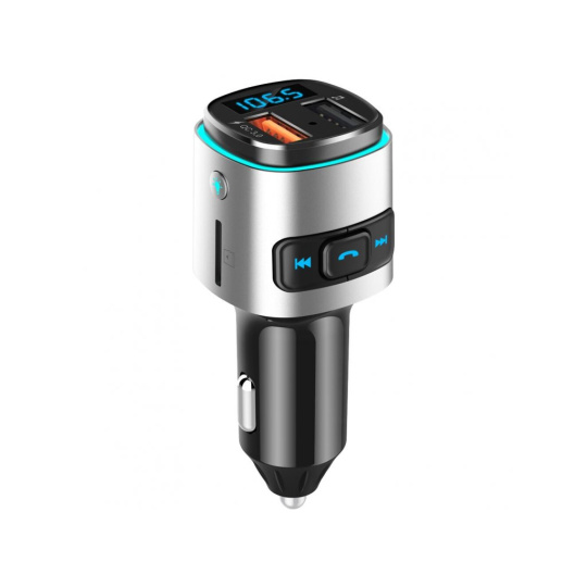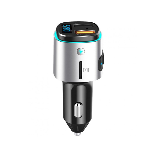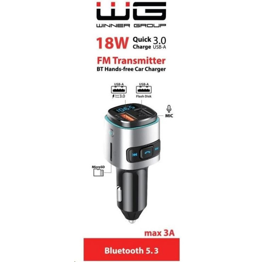 WG - Nabíječka do auta, Transmitter FM, QC 3.0, stříbrná