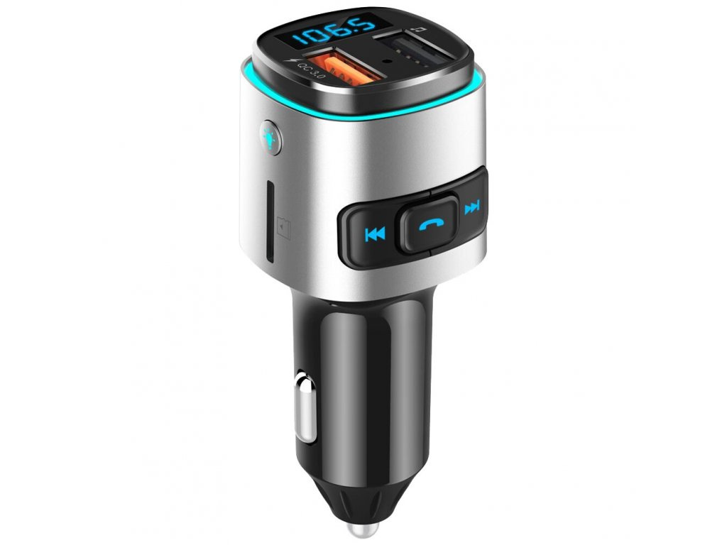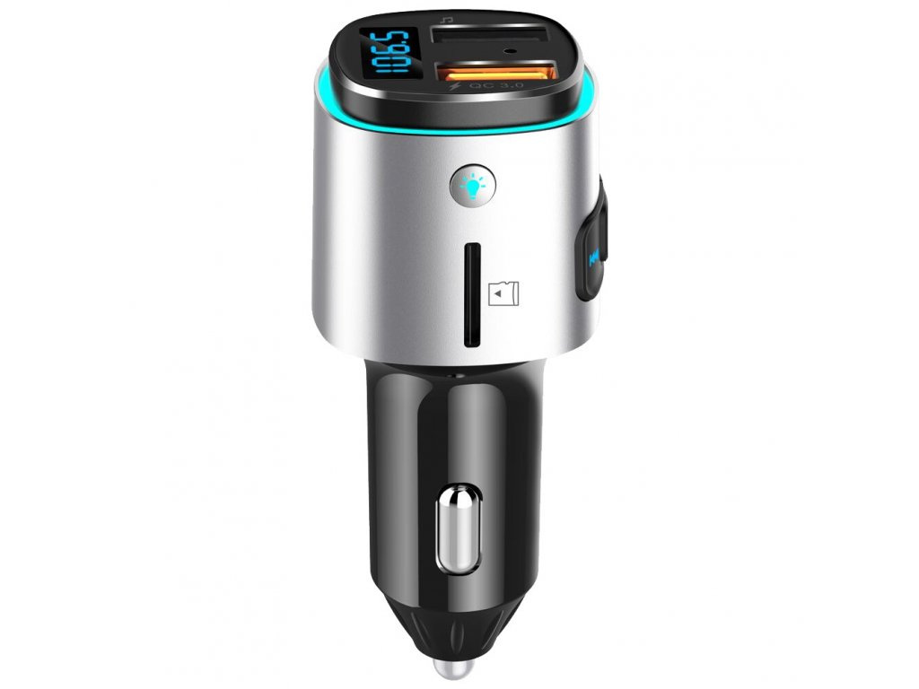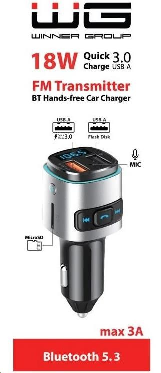 WG - Nabíječka do auta, Transmitter FM, QC 3.0, stříbrná