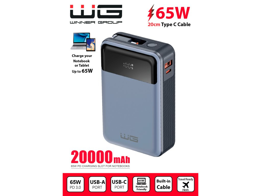WG - Power Bank 20000 mAh, USB-C PD 65W, černá