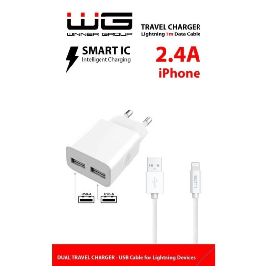 WG - Síťová nabíječka 2x USB-A 2,4A , Smart IC + kabel USB-A na Lightning, white
