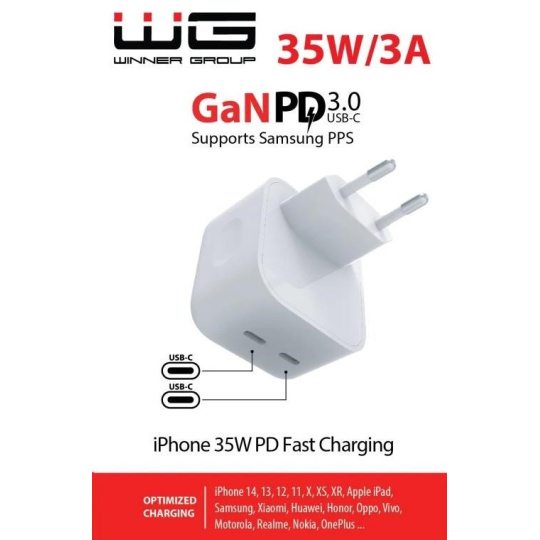 WG - Síťová nabíječka GaN 2x USB-C 35W, bílá