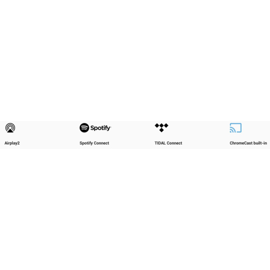 Bezdrátová digitální konektivita: Bluetooth 5.1, AirPlay 2, Chromecast Audio, Spotify Connect, TIDAL Connect, Alexa, DLNA, Roon