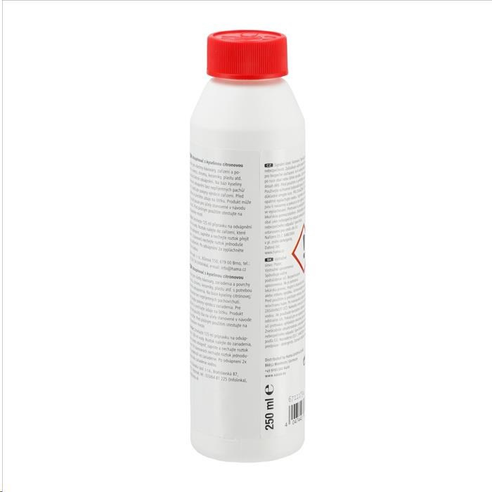 - přípravek pro rychlé odvápnění - vhodný pro všechny zařízení na přípravu čaje, kávy, pressa, kapslové kávovary, i plně automatické kávovary, vařiče vajíček, rychlovarné konvice, ponorné vařiče, hrnce, nerezové hrnce a pánve, dřezy, povrchy z nerezové oceli, chromu, keramiky a plastu atd., které vyžadují šetrné odvápnění - na bázi kyseliny citronové: odvápnění bez nepříjemných pachů/chutí - bezpečnostní uzávěr proti náhodnému otevření dětmi - objem: 250 ml - vyrobeno v Německu Upozornění: Dodržujte pokyny výrobce zařízení. Před použitím si přečtěte údaje na štítku. Před plošným použitím otestujte na nenápadném místě. Použití: Smíchejte 125 ml přípravku na odvápnění s 500 ml vody. Roztok nalejte do zařízení, které chcete odvápnit, zapněte a nechejte roztok přejít varem. U kávovarů nechejte roztok jednoduše projít zařízením. Po odvápnění 2x vypláchněte zařízení vodou..