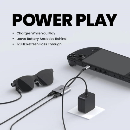 Power Play: Zvyšte výkon svých herních seancí a streamování při používání brýlí XREAL AR. Nabíjejte a hrajte, aby vaše herní dobrodružství už nikdy nepřerušila vybitá baterie.