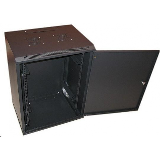 XtendLan 19" nástěnný rozvaděč 12U 600x450, nosnost 60kg, plné dveře, svařený, proti vykradení,černý