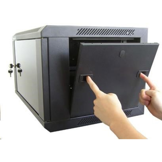 XtendLan 19" nástěnný rozvaděč 9U 600x600, nosnost 60 kg, skleněné kouřové dveře, svařovaný, černý