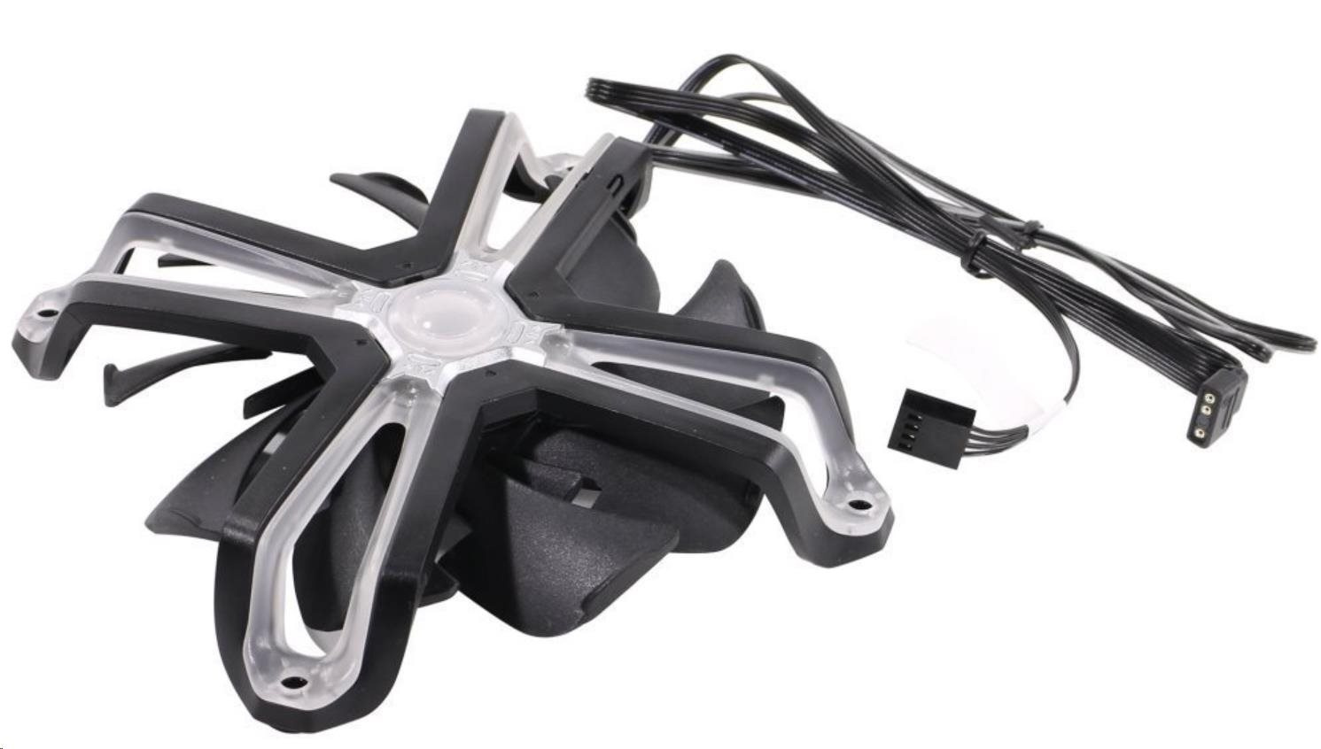 Tichý ventilátor s ARGB podsvícením v moderním Spider designu. Je vybaven jak standardním 4pinovým konektorem pro regulaci otáček, tak i 3pinovým ARGB konektorem pro ovládání LED osvětlení. FDB ložiska zaručí vysokou životnost ventilátoru i při neustálém provozu. Průměr ventilátoru je 120 mm.